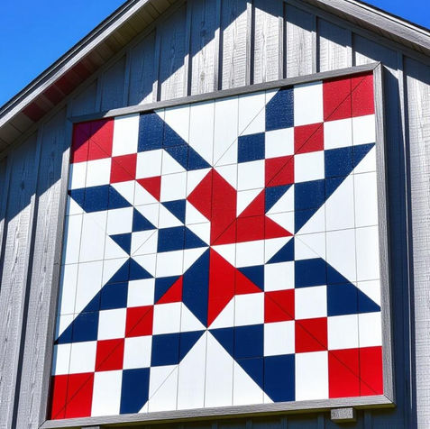 Discover our unique Drevo Design barn quilt patterns available for order or purchase. We provide potential clients with a wide selection of designs to choose from, each crafted using mostly repurposed lumber and wood and each piece cut stained/painted and fastened to a plywood base. Sizes offered range from 3' x 3' to 8' x 8'.